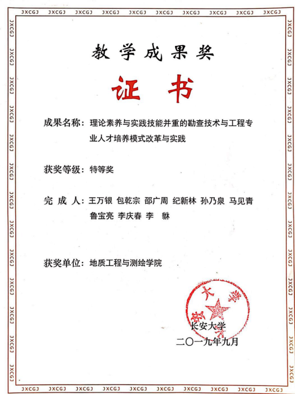 获长安大学教学成果一等奖(陕西省教学成果二等奖)
