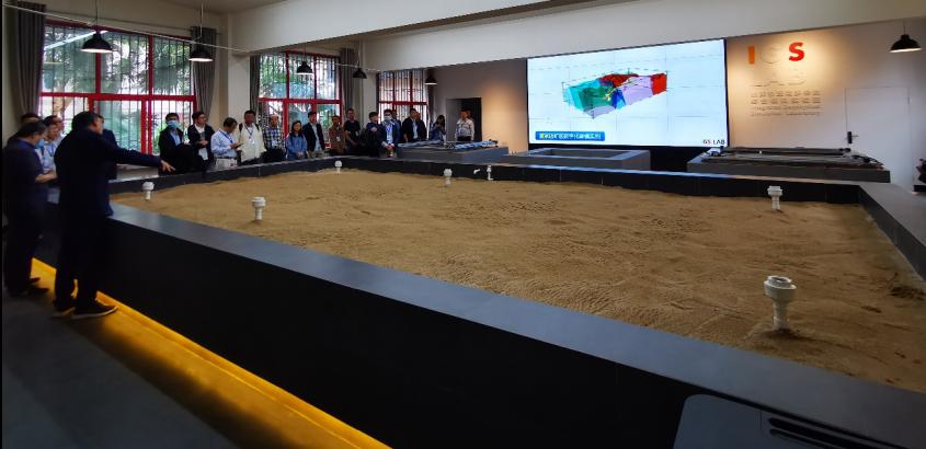 专家学者在地球物理场多参数综合模拟实验室进行学术交流